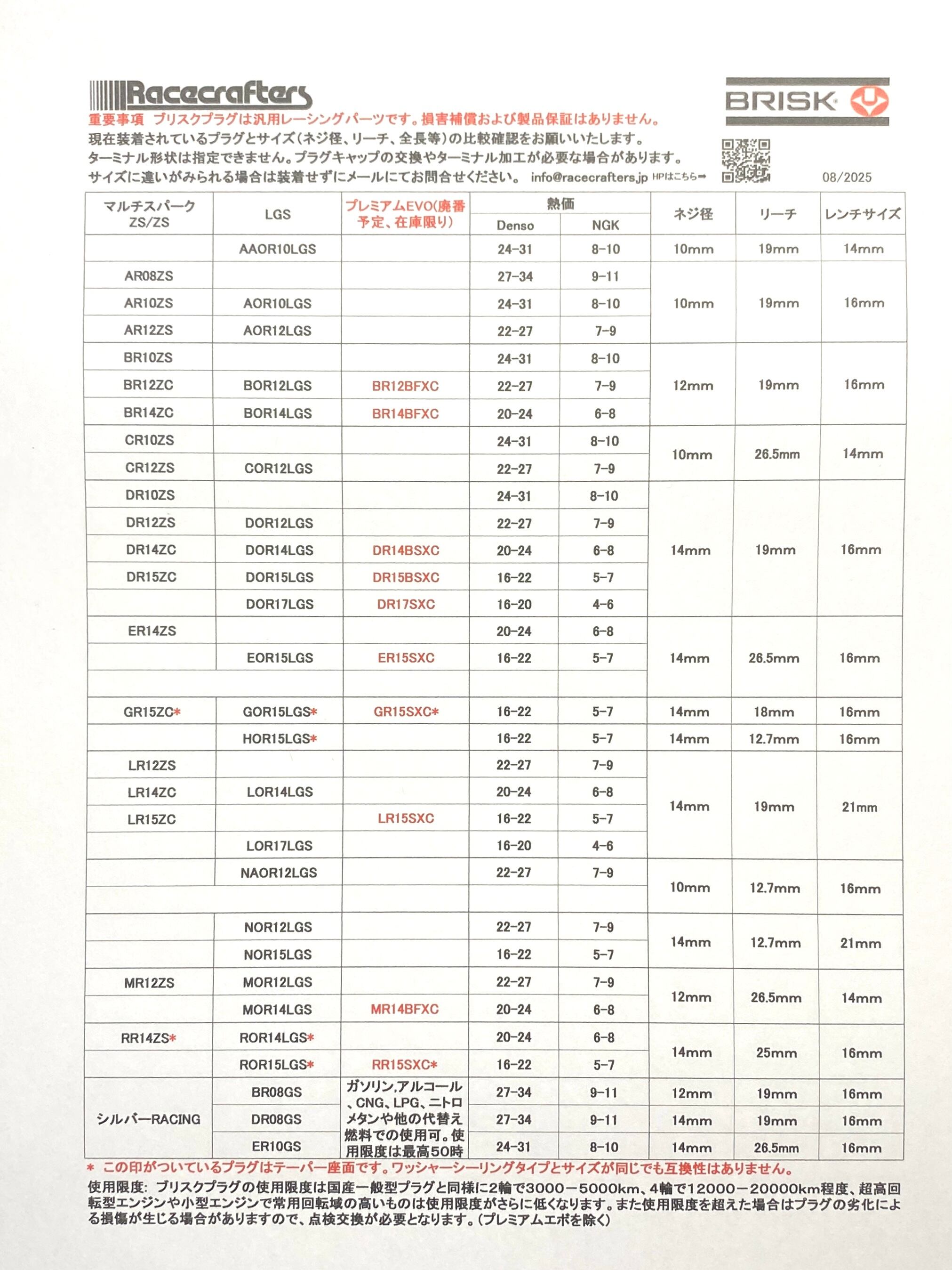 こちらのサイトで在庫切れの場合はブリスクスパークプラグのサイトからご購入ください